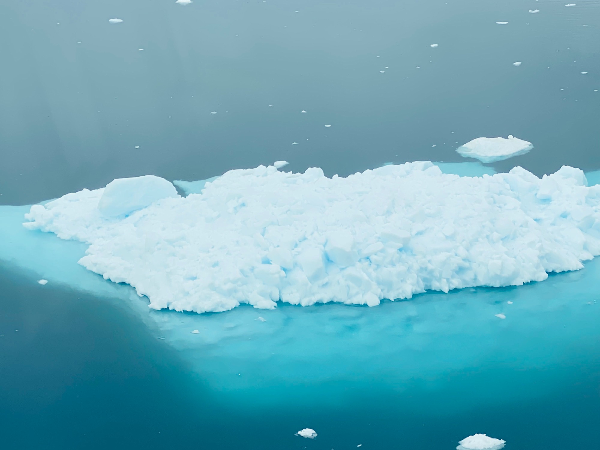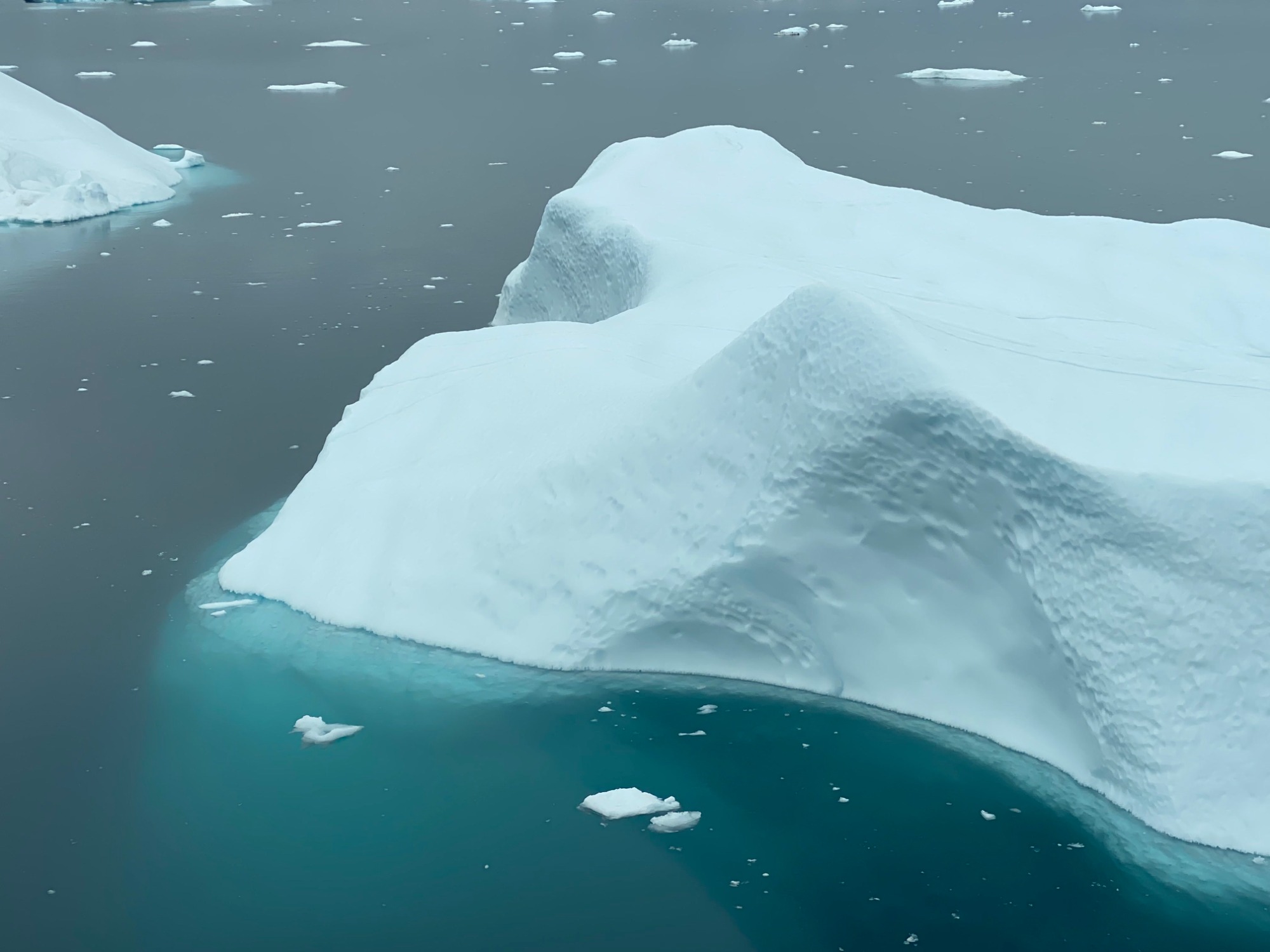 Der Flug entlang der Küste lässt die Vorfreude steigen. Wer rechts im Flieger sitzt, wird mit einem Anblick belohnt, der in Erinnerung brennt: immer größere Eisberge tauchen unter uns auf, einige wie Kathedralen aus reinem Licht.