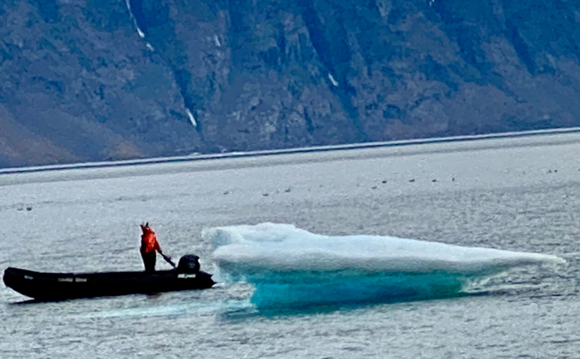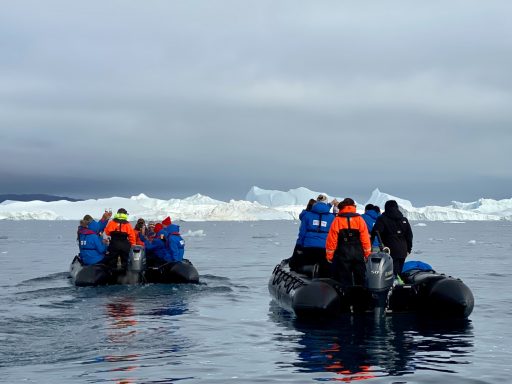 Die größte Bucht Grönlands ist ein Paradies aus Wasser, Fels und wanderndem Eis. Viele Walarten kommen im Sommer aus der Karibik hierher. Auf unserer Bootstour gleiten wir durch tiefblaues Wasser, während das Schnauben der Wale zwischen den Eisbergen widerhallt.Hier wirkt die Natur grenzenlos und lebendig.