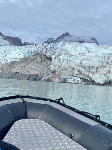 Der Höhepunkt der Reise: ein Helikopterflug über einen der produktivsten Gletscher der Erde.Wir schweben über: