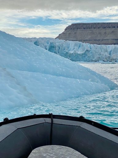 Hier wurde mir bewusst, wie klein wir sind. Kein Laut außer dem Knacken des Eises, dem Ruf eines Seevogels – und dem leisen Summen der Zodiacs, die uns zwischen die Eisskulpturen brachten.