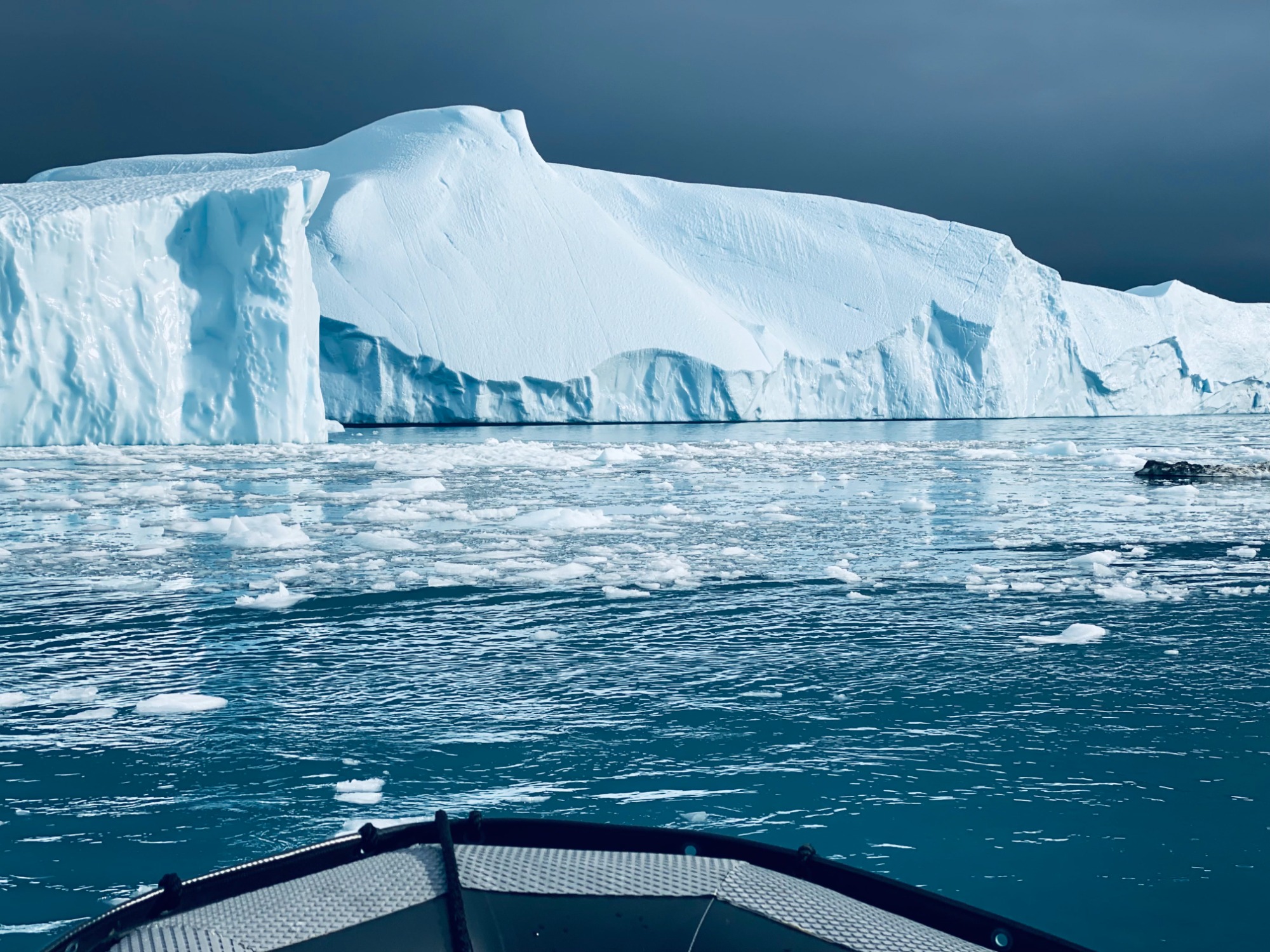 Dann öffnete sich die Bühne für eines der spektakulärsten Naturschauspiele der Arktis: die Disko-Bucht. Gewaltige Eisberge trieben durch die weite Bucht, viele von ihnen geboren vom legendären Sermeq Kujalleq bei Ilulissat – einem der schnellsten Gletscher der Welt.