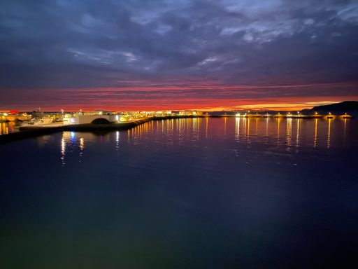Zum Abschluss erreichten wir Sisimiut. Die malerische Altstadt mit ihren Kolonialhäusern leuchtete im warmen Licht der Mitternachtssonne. Fischerboote lagen ruhig im Hafen, während die Berge im Hintergrund glühten.