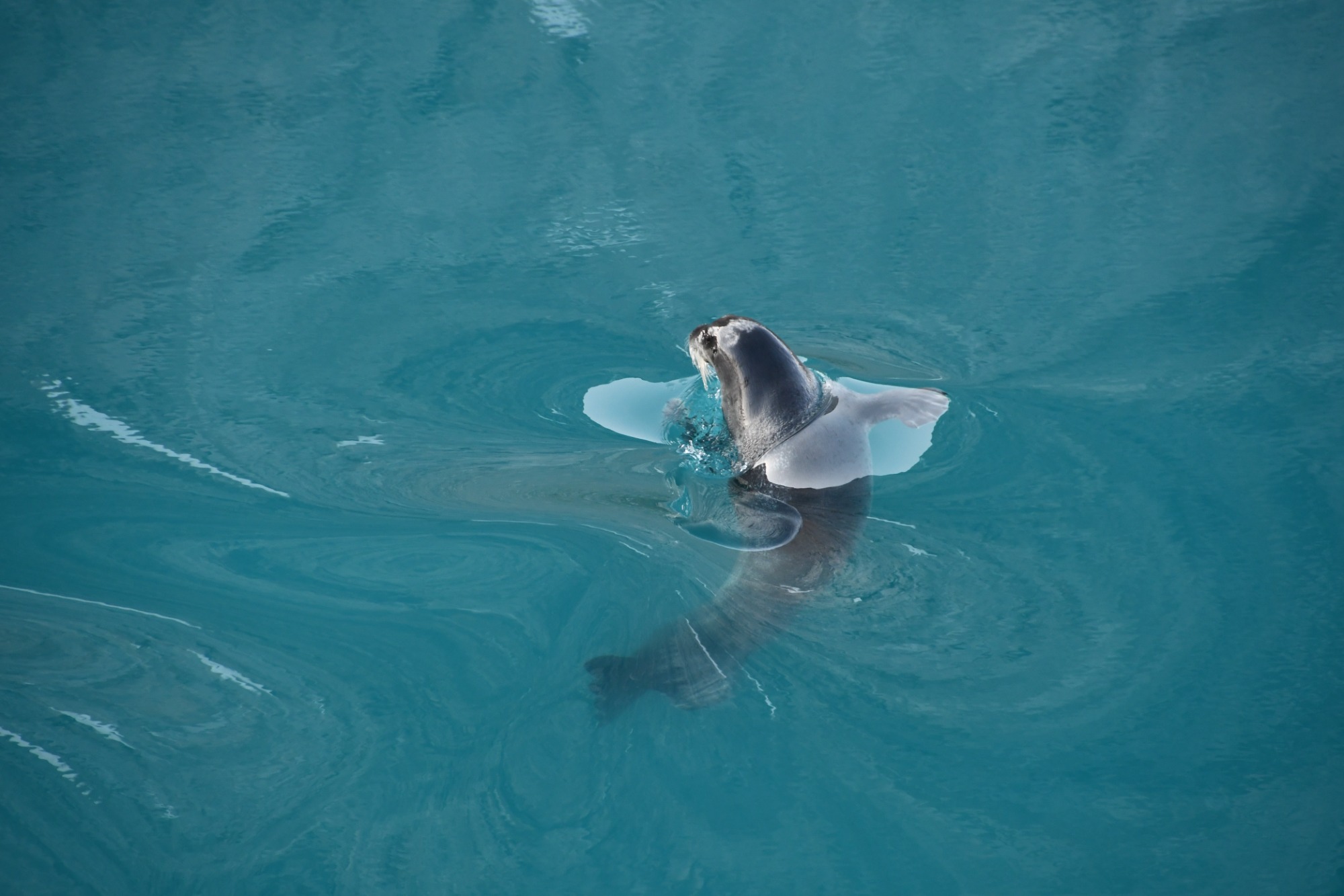 Steile Felswände, an denen Wasserfälle wie silberne Fäden herabstürzen. Gletscherzungen, die direkt ins Meer kalben. Treibende Eisberge, die durch die enge Passage gleiten. Und plötzlich – ein gewaltiger Atemstoß: Ein Buckelwal tauchte auf, hob majestätisch die Fluke und verschwand wieder in der Tiefe.