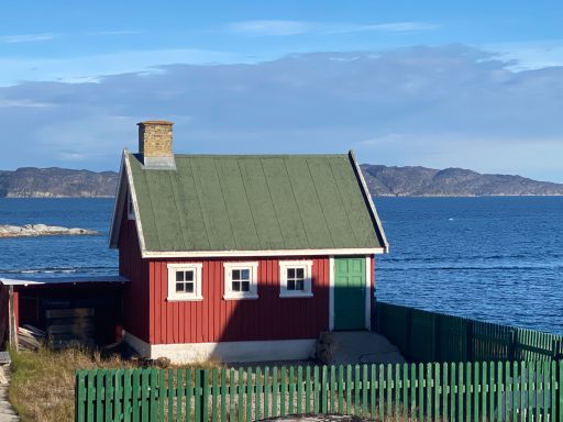 Im grönländischen Dorf Aasiaat, etwa 250 km nördlich des Polarkreises, erhielt ich Einblicke in das Leben der Inuit – früher wie heute. Bunte Holzhäuser trotzen Wind und Winter. Kinder spielten zwischen Schlitten und Booten. Die Gemeinschaft wirkt klein – aber stark.