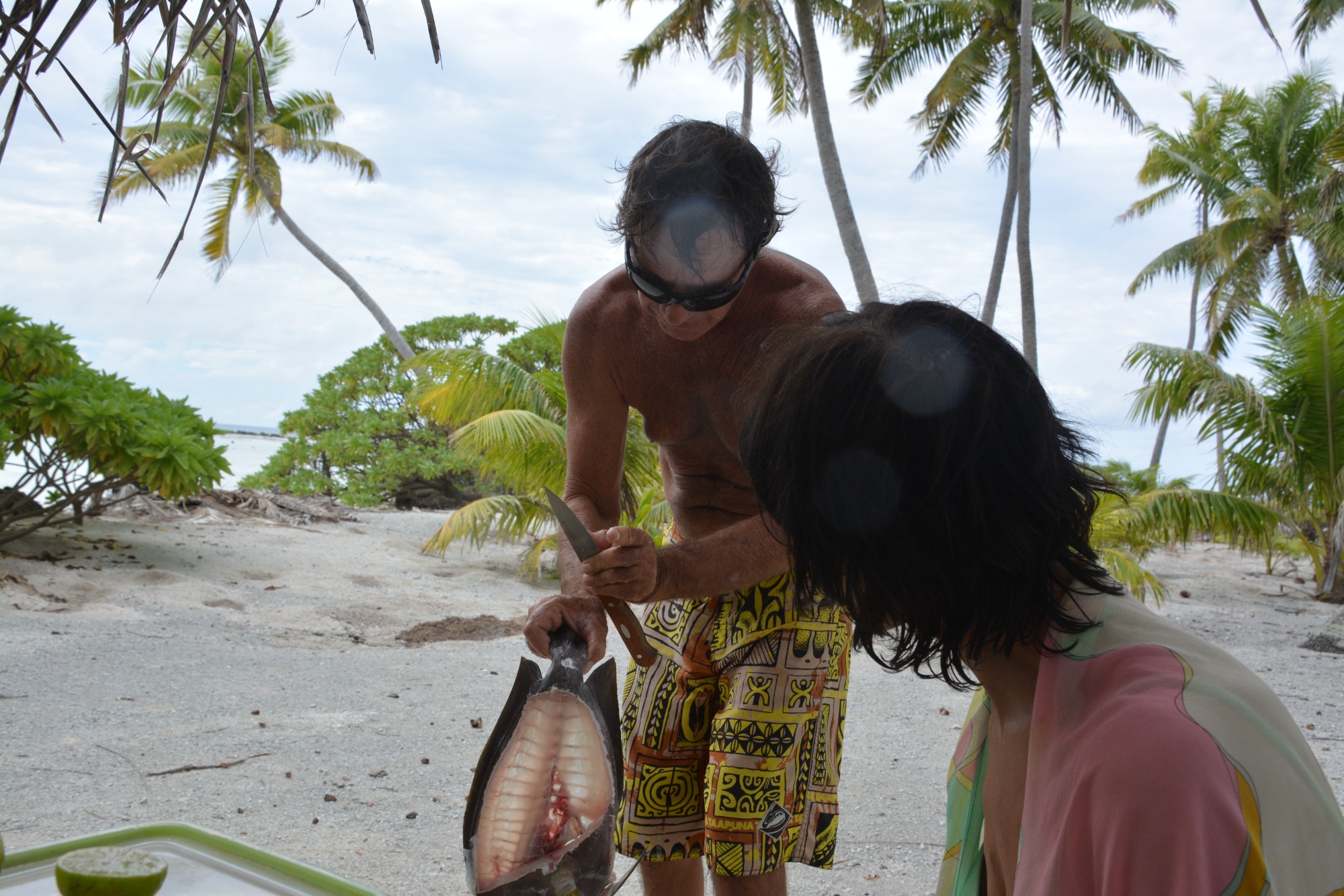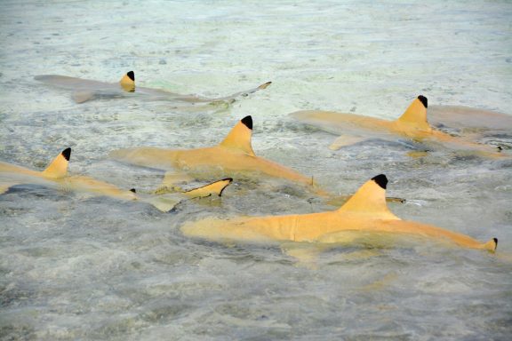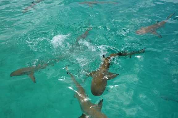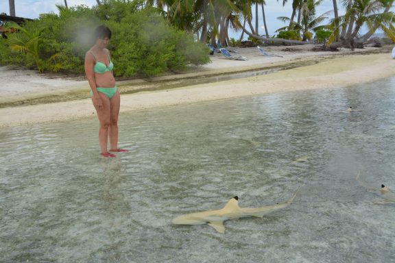 Die Ankunft in Rangiroa ist überwältigend. Die Lagune glitzert in allen Türkis- und Smaragdnuancen. Wir fahren in den Tiputa-Pass – Haie gleiten unter der Wasseroberfläche, Fische in allen Farben des Regenbogens.