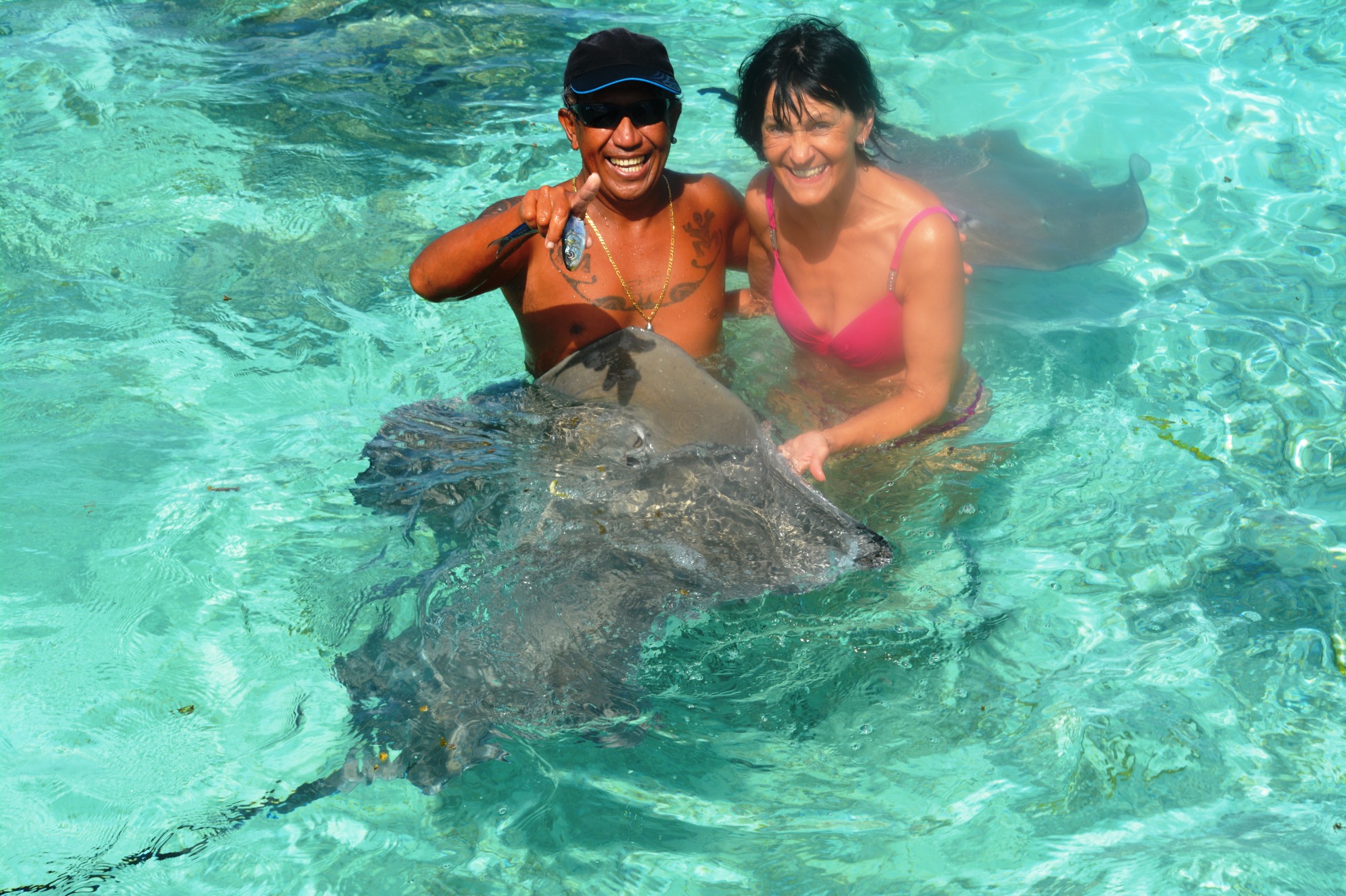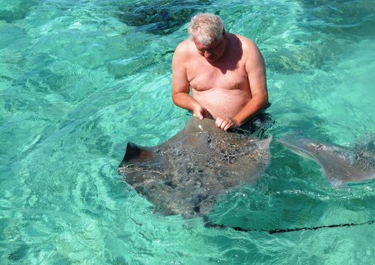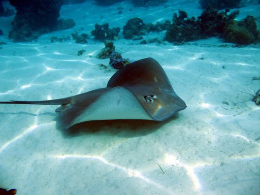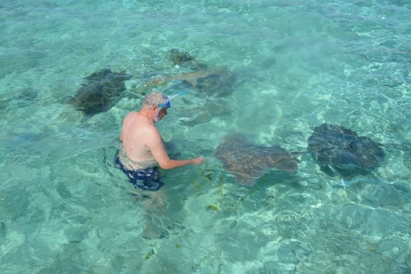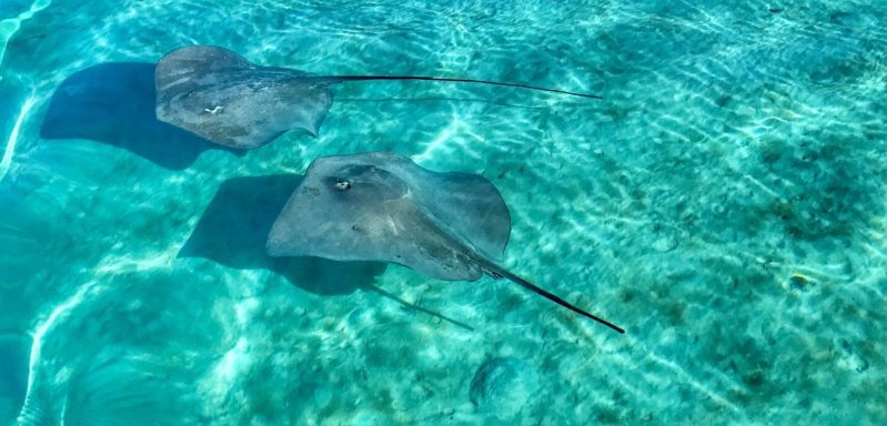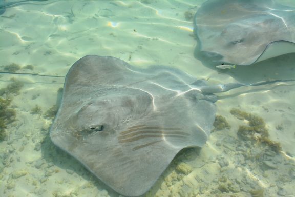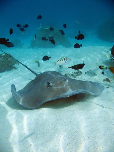 Die Hauptattraktion Bora Boras ist zweifellos die Lagune. Sie gehört zu den schönsten und artenreichsten der Welt. Beim Schnorcheln treiben wir über Korallengärten, in denen tausende bunte Tropenfische zwischen Anemonen und Korallen tanzen. Papageifische, Falterfische und Doktorfische begleiten uns durch das glasklare Wasser. In den tieferen Bereichen begegnen wir Barrakudas und Schwarzspitzen-Riffhaien. Bei geführten Touren werden sie aus respektvoller Entfernung beobachtet – ein faszinierendes Schauspiel. Ein Höhepunkt ist die berühmte „Rochenstraße“: In diesem Abschnitt der Lagune versammeln sich große Schwärme von Rochen, darunter majestätische Mantas und elegante Leopard-Stechrochen. Lautlos gleiten sie unter uns hindurch – ein beinahe magischer Moment. Wir sind mittendrin.