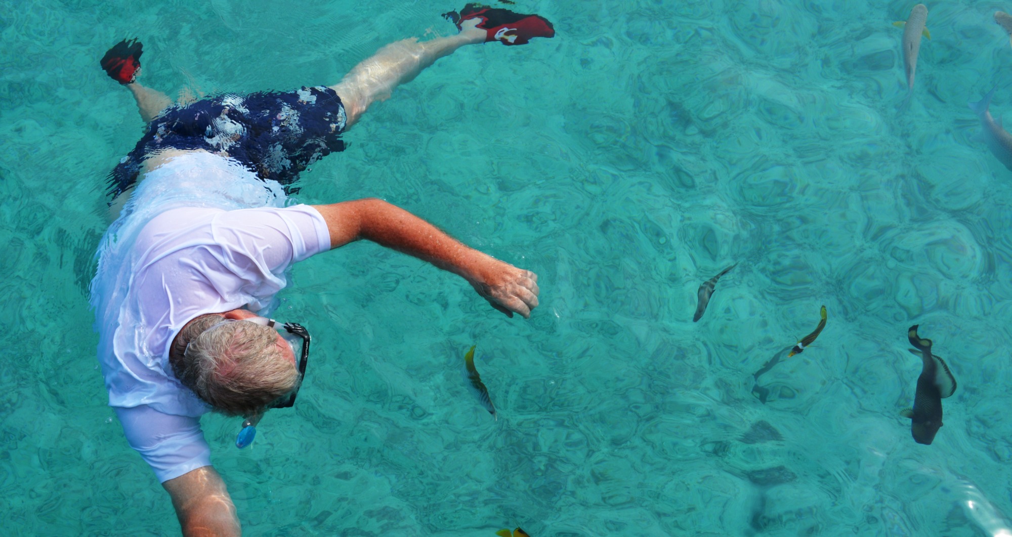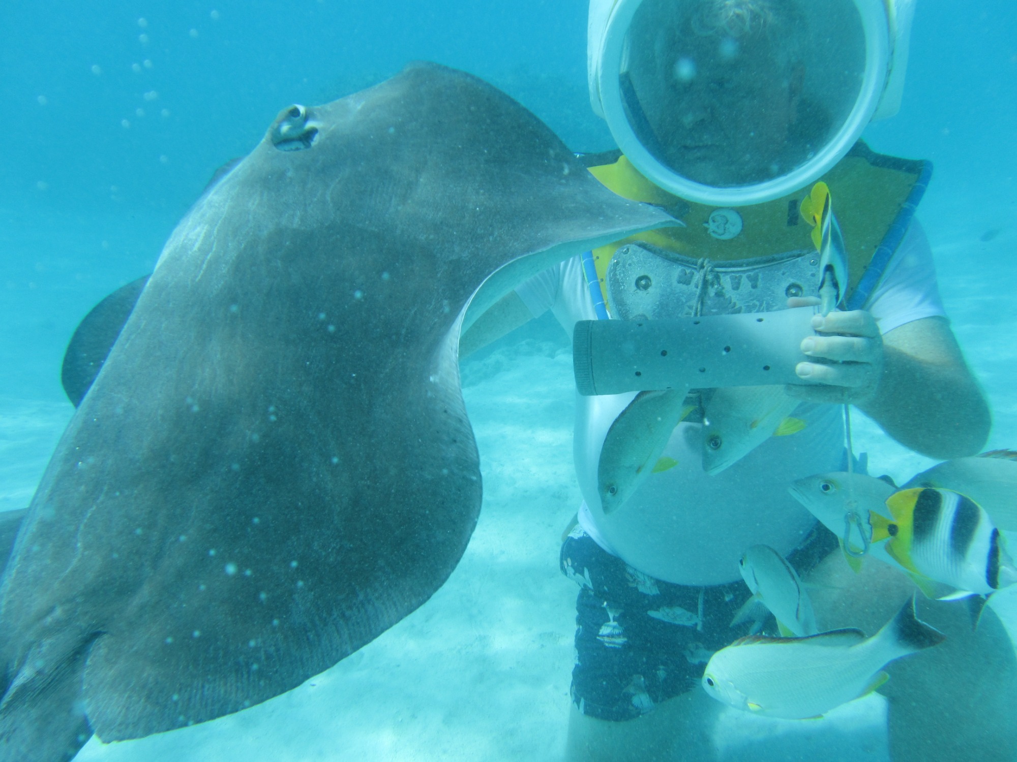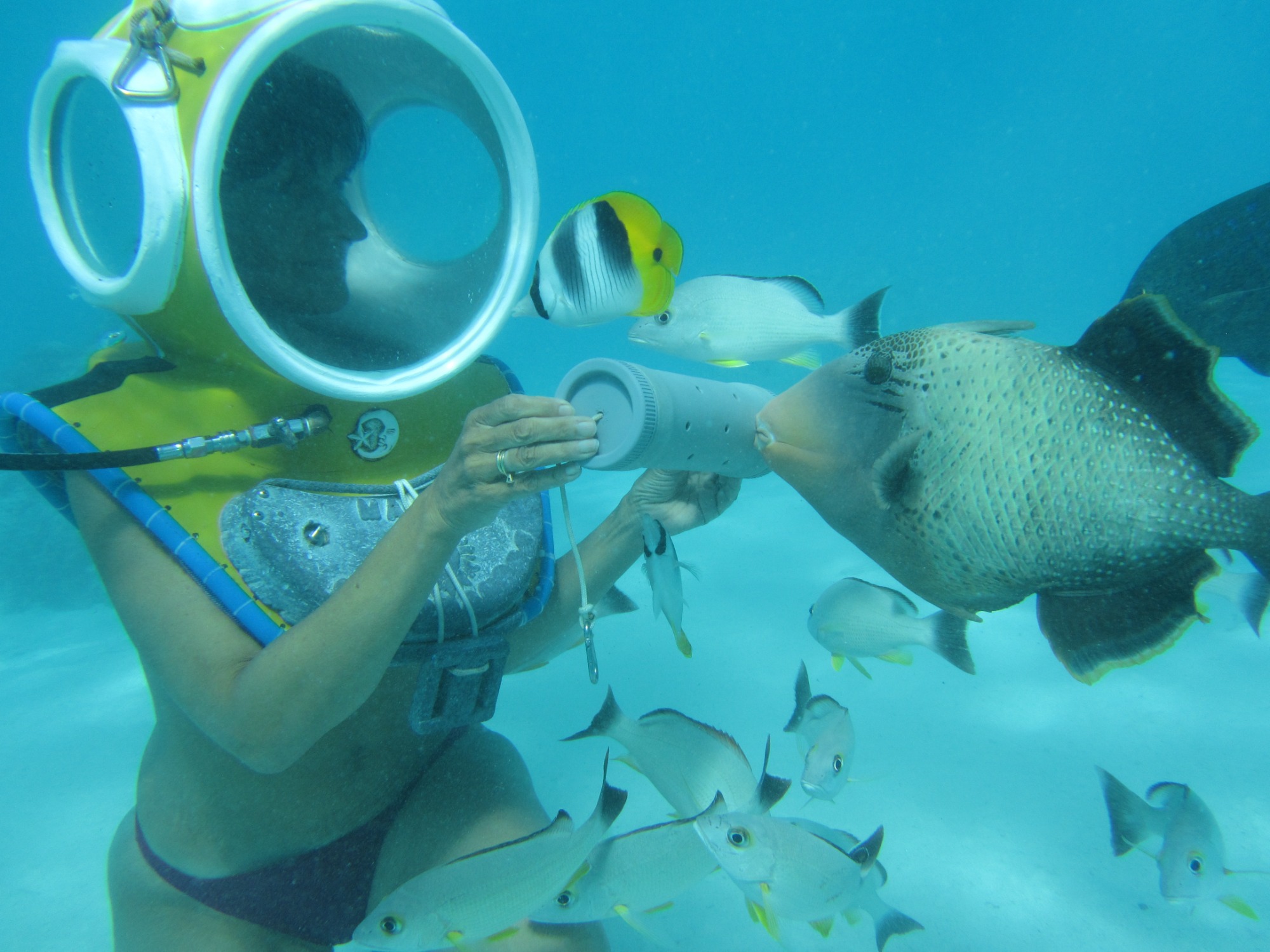 Ein weiterer Höhepunkt wartet bei einem weiteren Ausflug uns: Mit einem speziellen Unterwasserhelm tauchen wir bis fünf Meter tief. Wir gehen auf Tuchfühlung mit der Unterwasserwelt, atmen ganz natürlich und wandeln zwischen bunten Fischen und Korallenriffen – ein stiller Tanz mit der Natur, der uns tief beeindruckt.