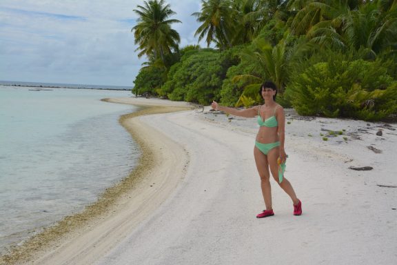 Ein Bootsausflug bringt uns zum Motu Haapiti, einem der kleinen Koralleneilande des Atollrings. Feinsandige, weiße Strände, kristallklares, flaches Wasser und eine fast meditative Stille empfangen uns.