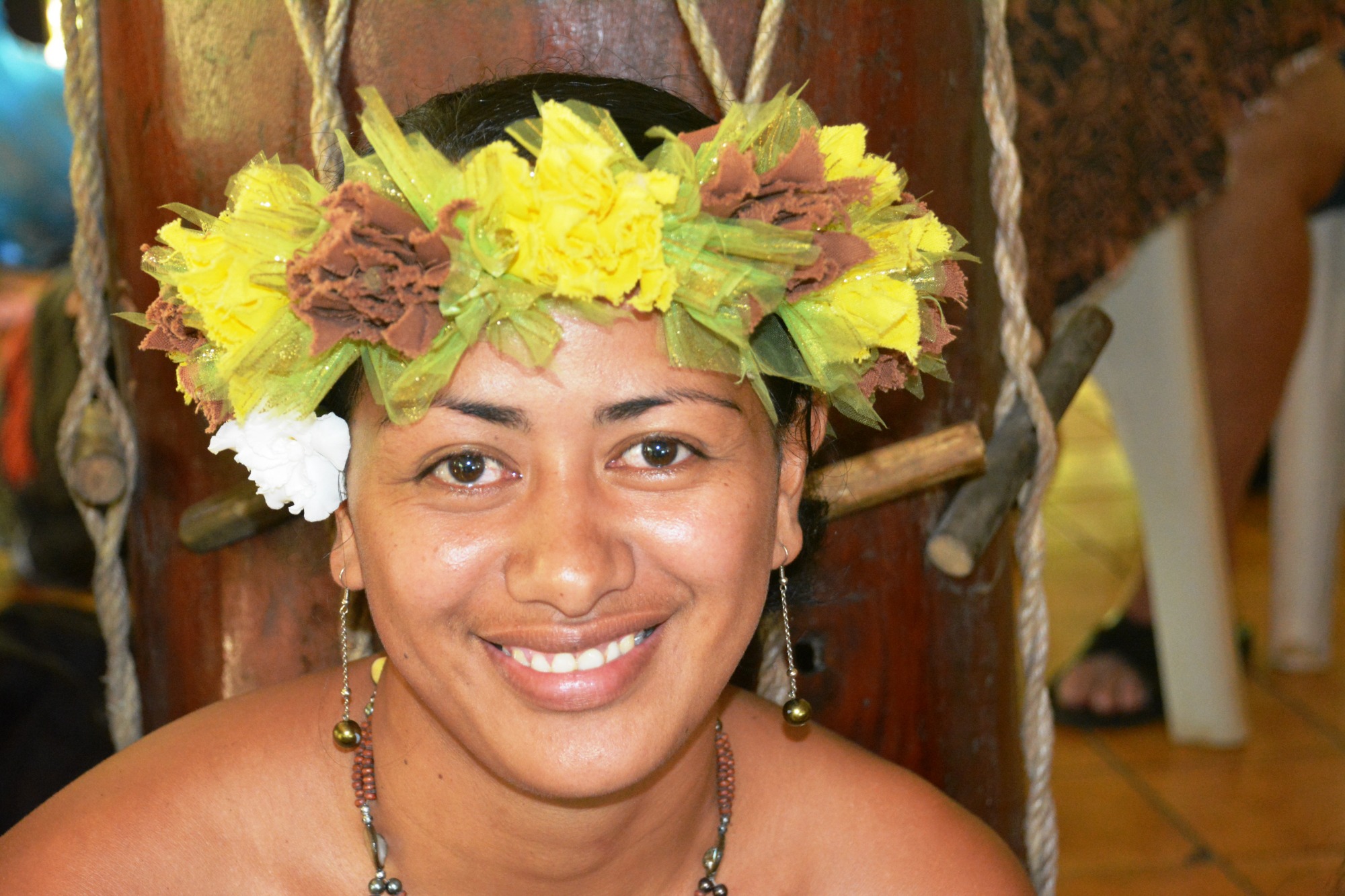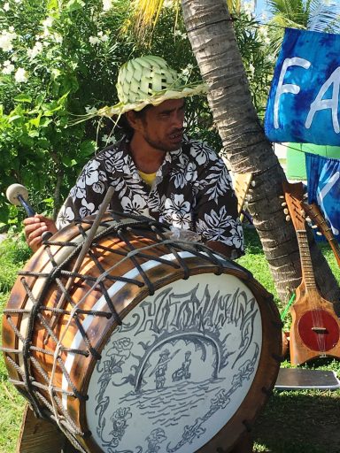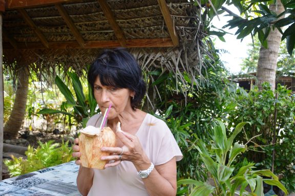 Am Markt lerne ich Mata, eine Künstlerin, kennen, die uns zeigt, wie man aus Kokosnüssen Schalen, Musikinstrumente und Schmuck fertigt. Ich probiere es selbst – meine Hände sind voller Kokosfett, und ich lache, weil das Holz unter meinen Fingern lebendig wird.
