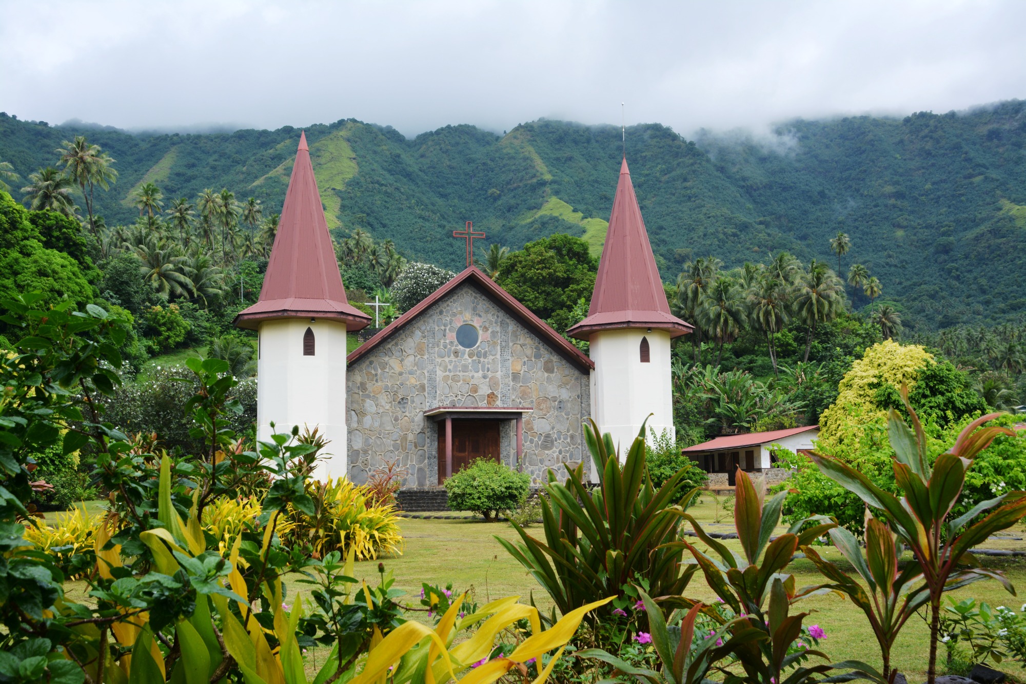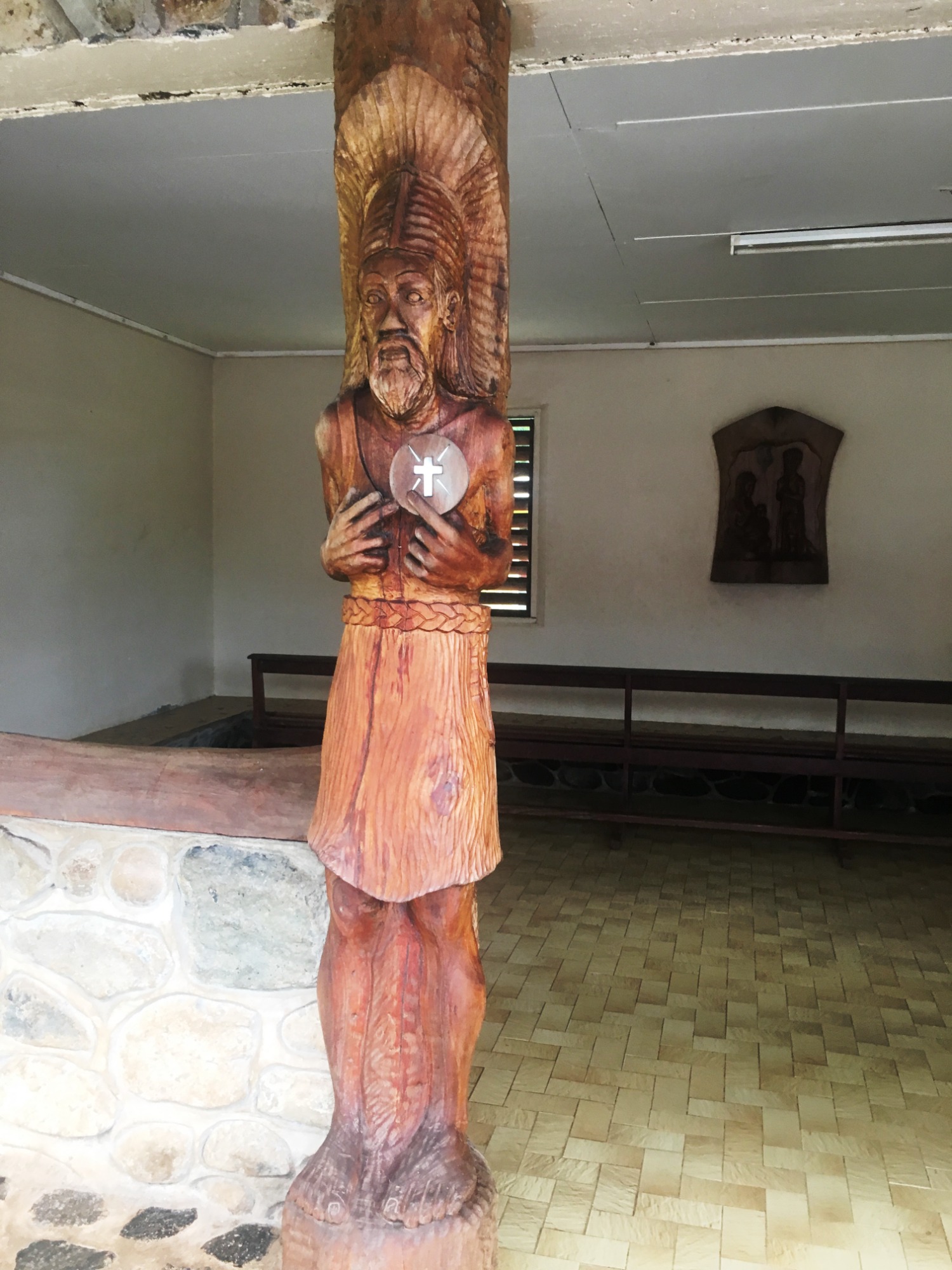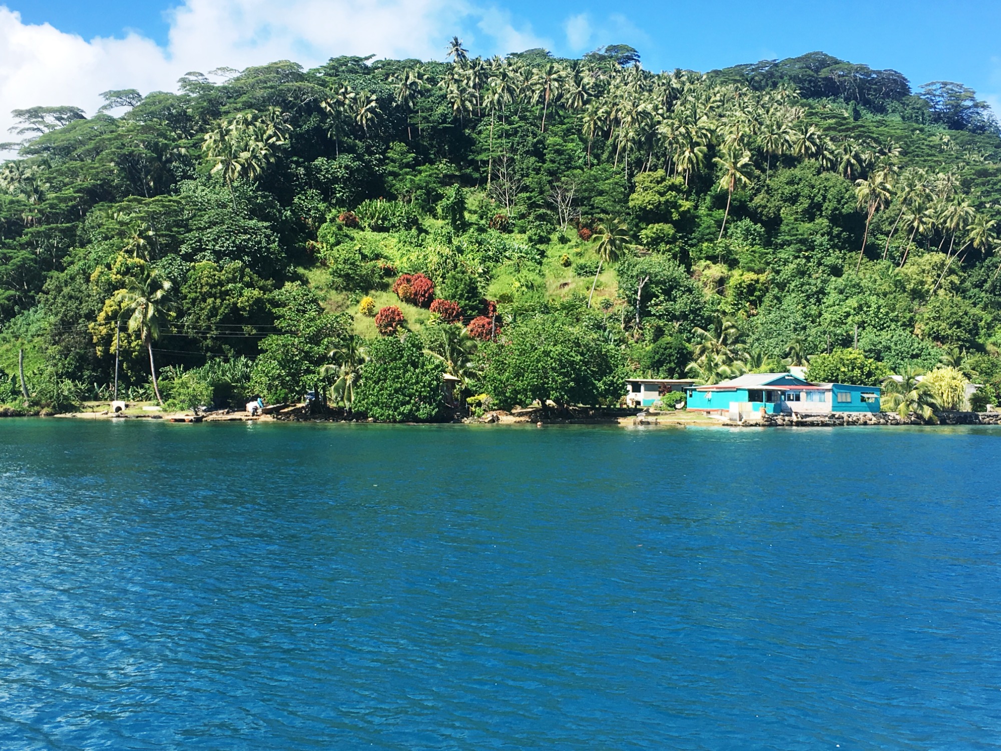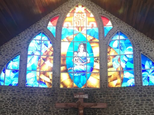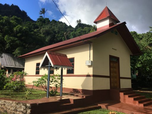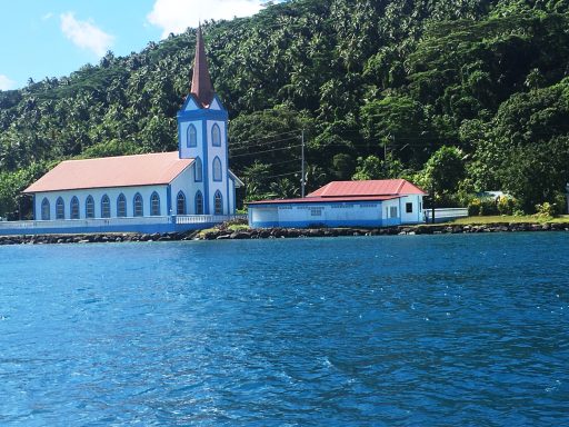 Fakarava empfängt uns mit warmem Sonnenschein und türkisfarbenem Wasser, das fast leuchtet. Die kleine Kirche am Dorfplatz ist aus Korallen gebaut – wir treten ein, die Luft ist kühl und riecht nach Salzwasser und Holz.
