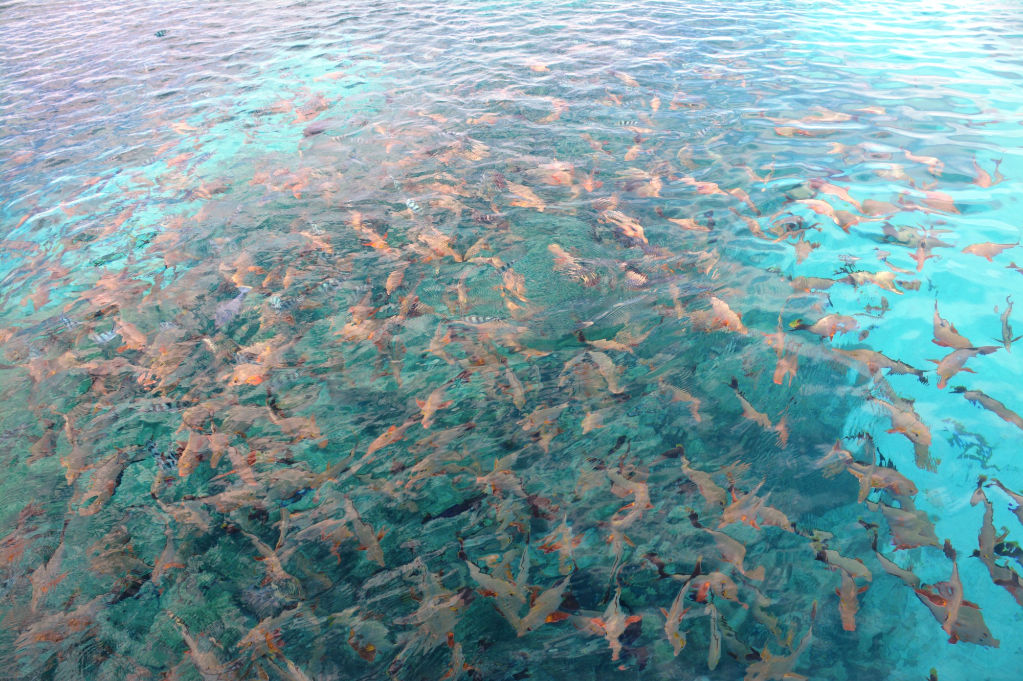 Der Höhepunkt unseres Schnorchelausflugs ist der Tiputa Pass, einer der spektakulärsten Plätze in ganz Französisch-Polynesien. Hier verbindet sich die Lagune mit dem offenen Pazifik. Die starken Strömungen bringen nährstoffreiches Wasser, das ein unglaubliches Leben unter Wasser anzieht. Riesige Fischschwärme tauchen direkt unter der Oberfläche auf – wir tauchen mitten hinein, schwimmen zwischen unzähligen bunten Fischen und spüren die Kraft des Meeres um uns herum. Es ist ein Gefühl von Freiheit und Abenteuer, das man nur hier erleben kann.