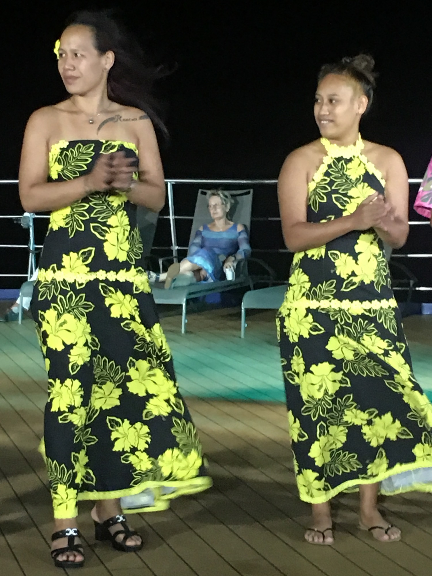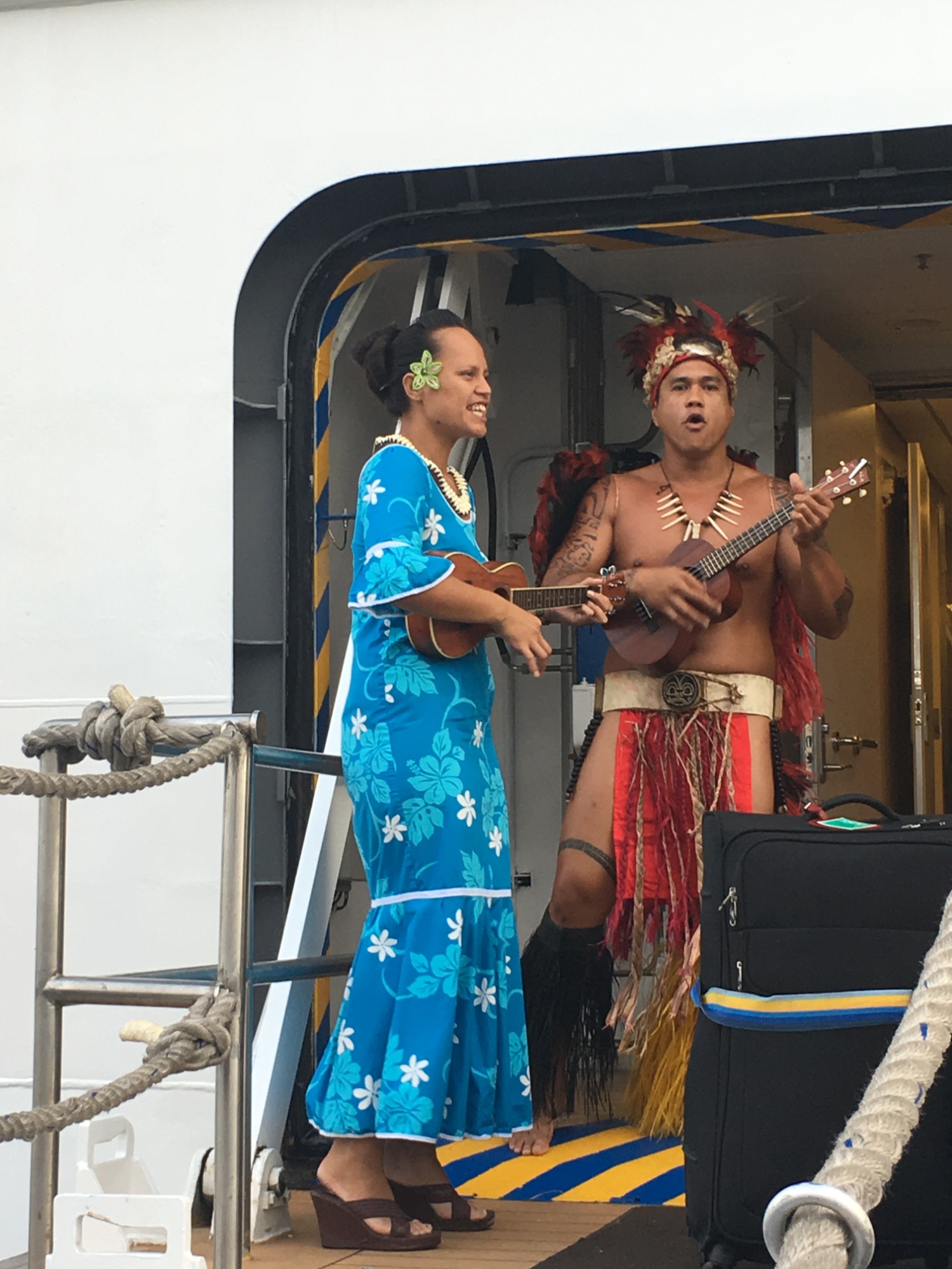 Die Crew lädt uns ein, mitzutanzen. Ich stolpere zuerst, dann verliere ich mich in den Rhythmen der Ukulele und Trommeln. Lachen hallt über das Deck, und plötzlich spüre ich die polynesische Lebensfreude in meinem eigenen Körper. Mein Freund sagt zu mir: „Hier wird man eins mit dem Rhythmus der Inseln.“ Ich nicke – ja, genau so fühlt es sich an.