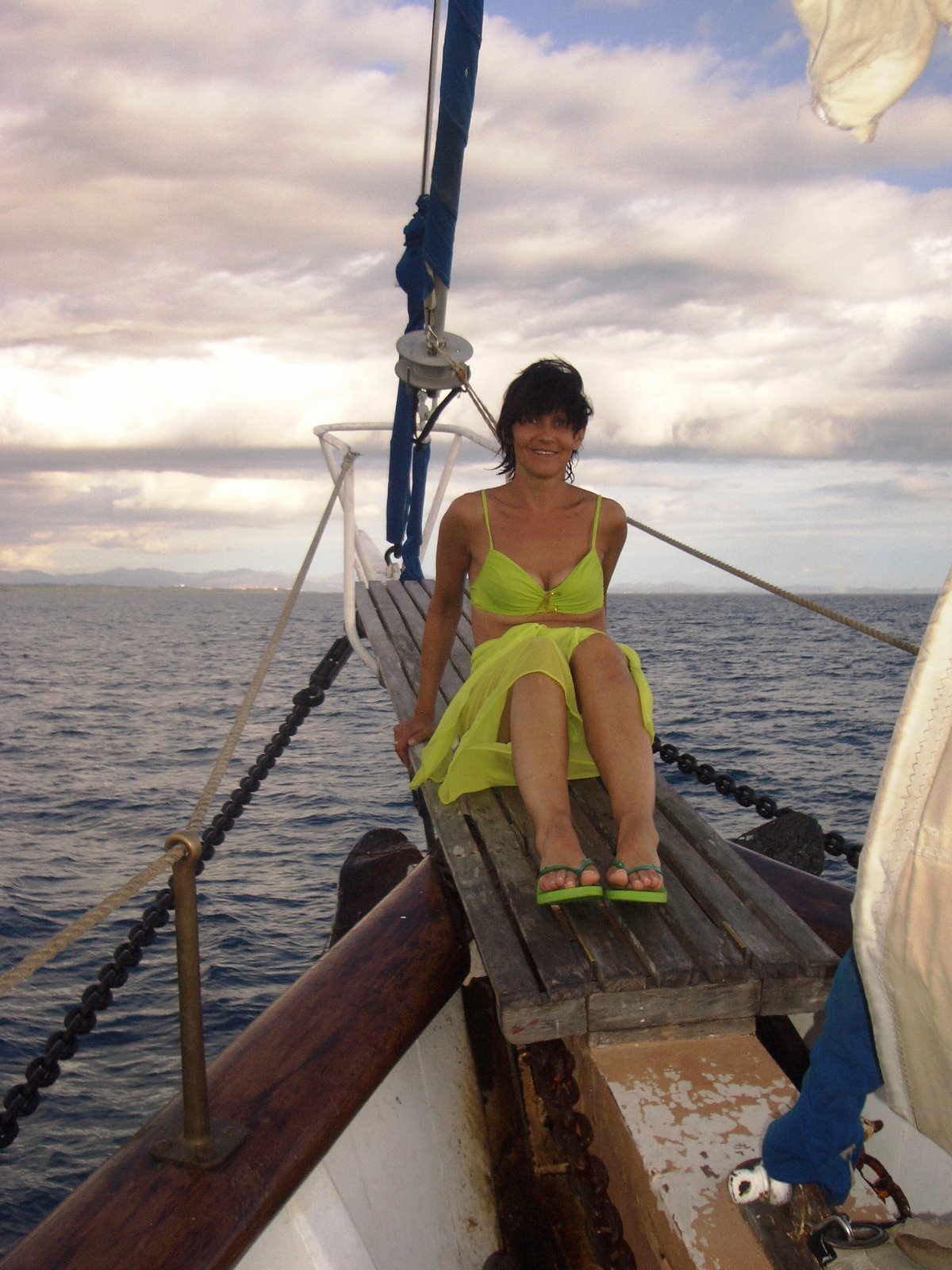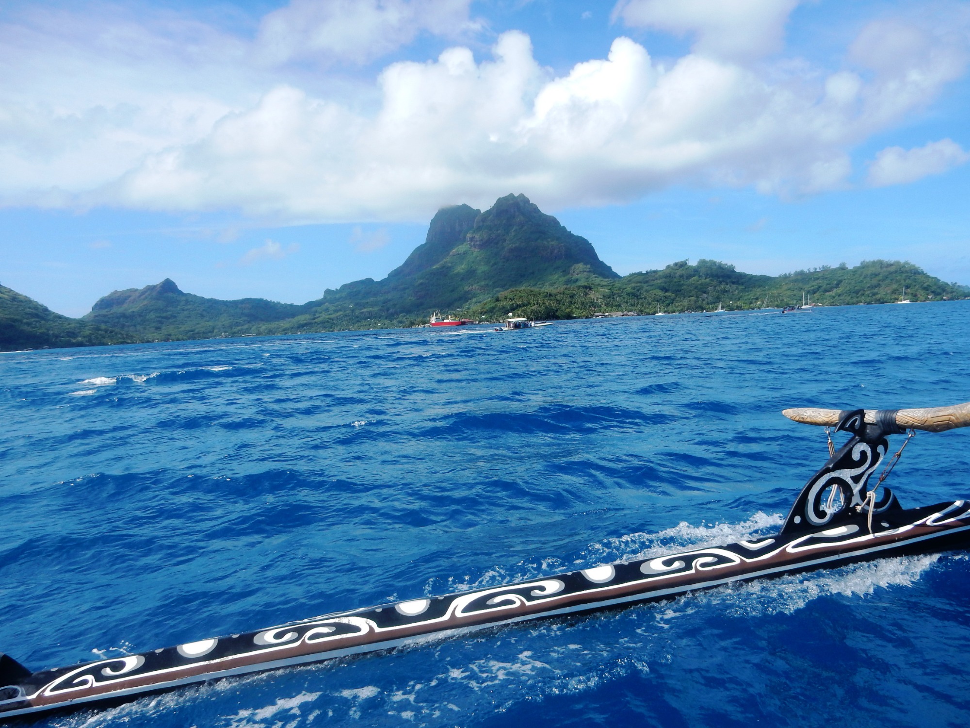Beim Ablegen sehen wir Tahiti langsam verschwinden: grüne Berge, Palmen, kleine Buchten – und wir mittendrin auf dem offenen Pazifik. Das Schiff vibriert leise unter unseren Füßen, der Geruch von Salzwasser mischt sich mit frischem Kaffee. Ein erster Eindruck: Wir sind in einer anderen Welt, und das Herz schlägt schneller.