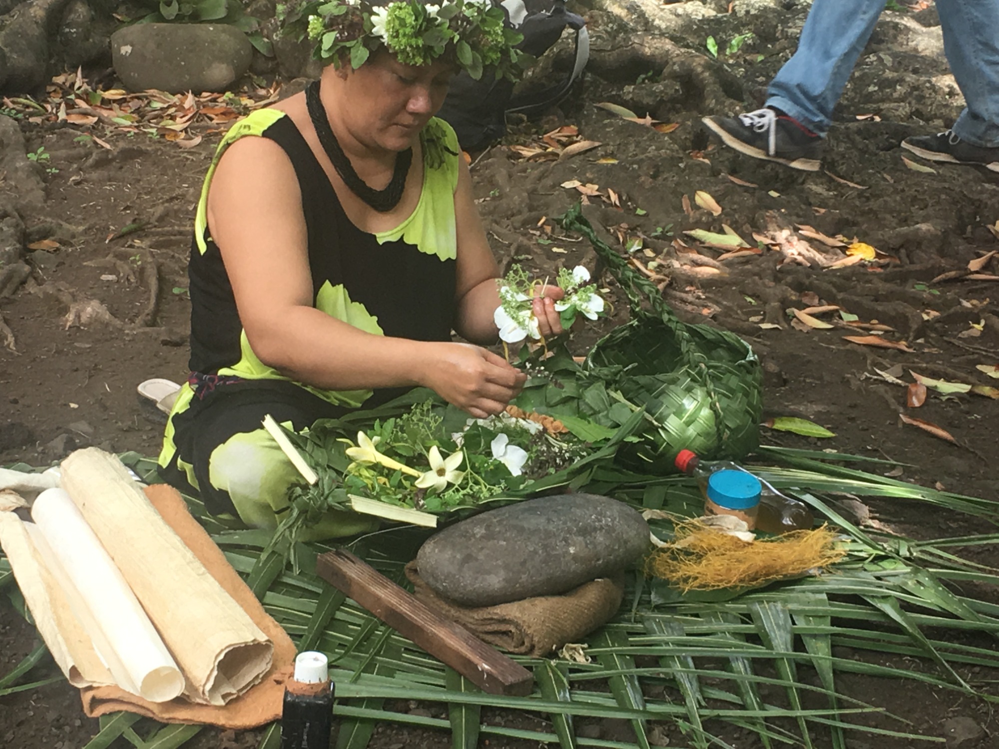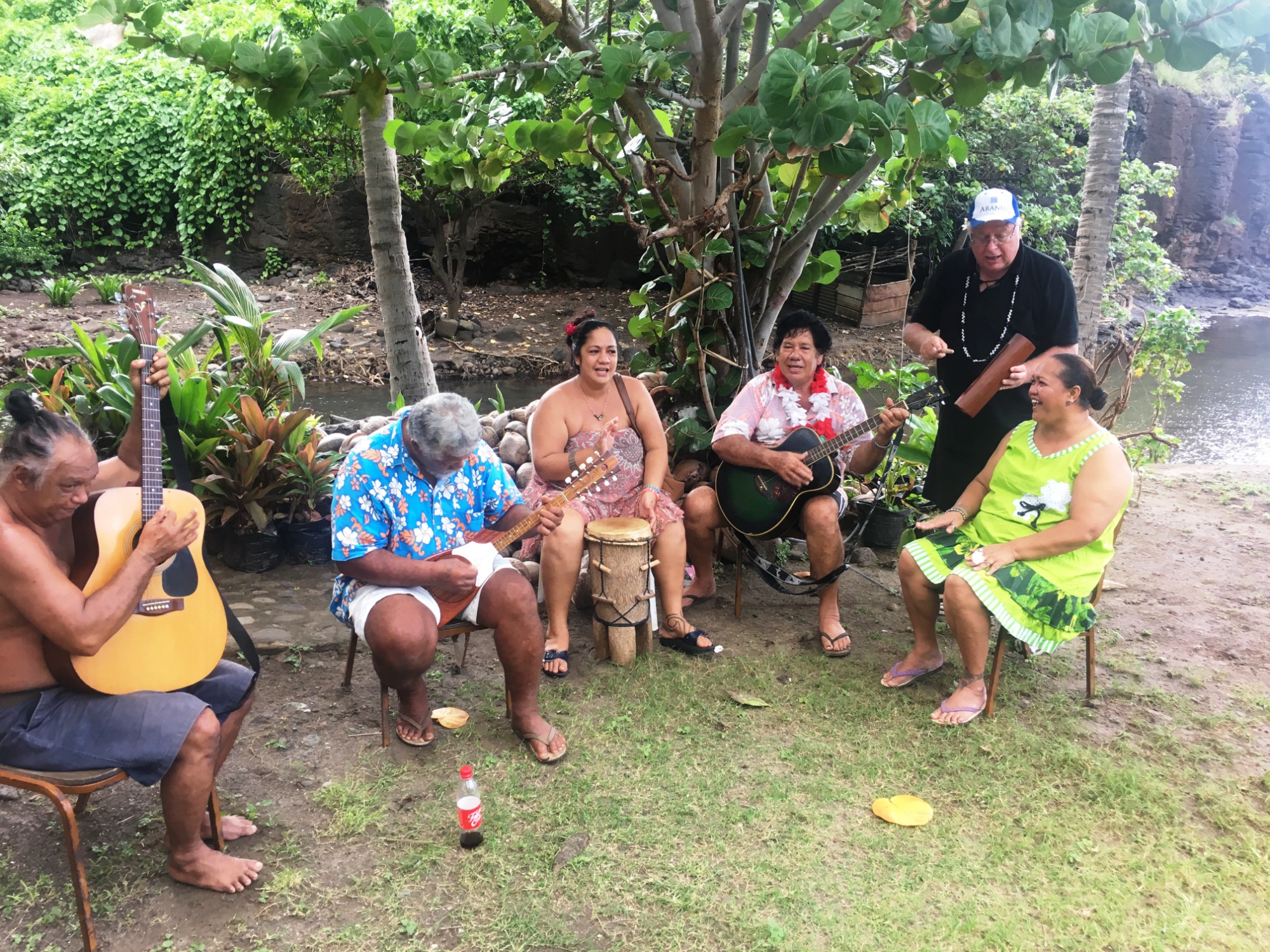 Die Tohuha Kamuihei-Stätte ist überwältigend. Petroglyphen, riesige Banyanbäume, und die Geschichten der Krieger scheinen zwischen den Ästen zu flüstern. Beim Mittagessen genießen wir frischen Fisch, Taro und Brotfrucht, begleitet von traditionellen Liedern – ein Geschmack der Insel, der nach Freiheit und Sonne schmeckt.
