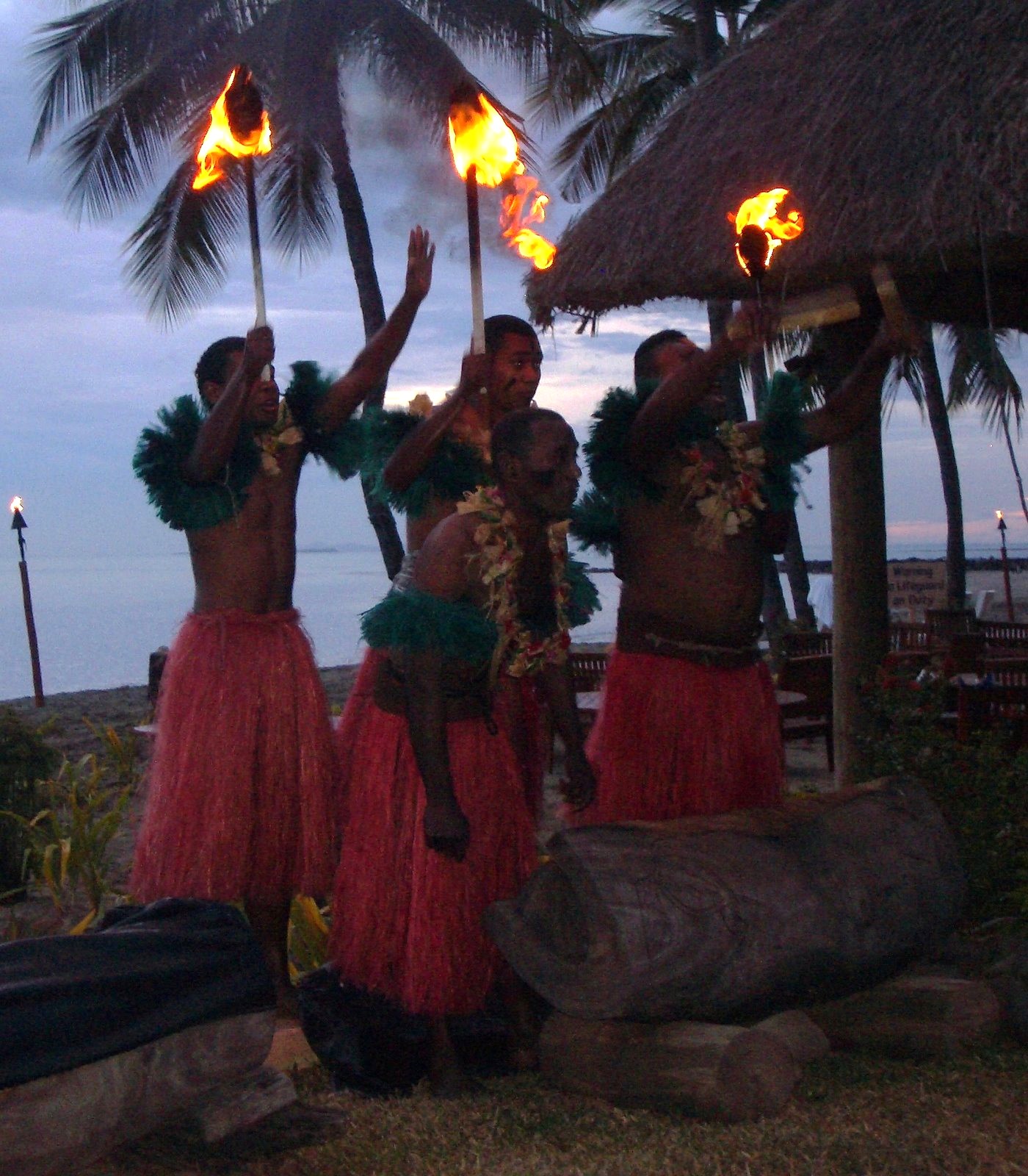 Der erste Abend startet mit einem traditionellen Willkommenstanz. Die Einheimischen tragen bunte Blumenkronen (Lei), es wird gesungen und getanzt, und eine herzliche Begrüßung läutet das Fest ein. Anschließend erleben wir die Kava-Zeremonie (Sevusevu): Kava aus der Yaqona-Wurzel wird in einer großen Holzschale zubereitet, der Zeremonienmeister trinkt zuerst, und wir klatschen rhythmisch vor und nach dem Trinken – ein Symbol für Gemeinschaft und Respekt.
