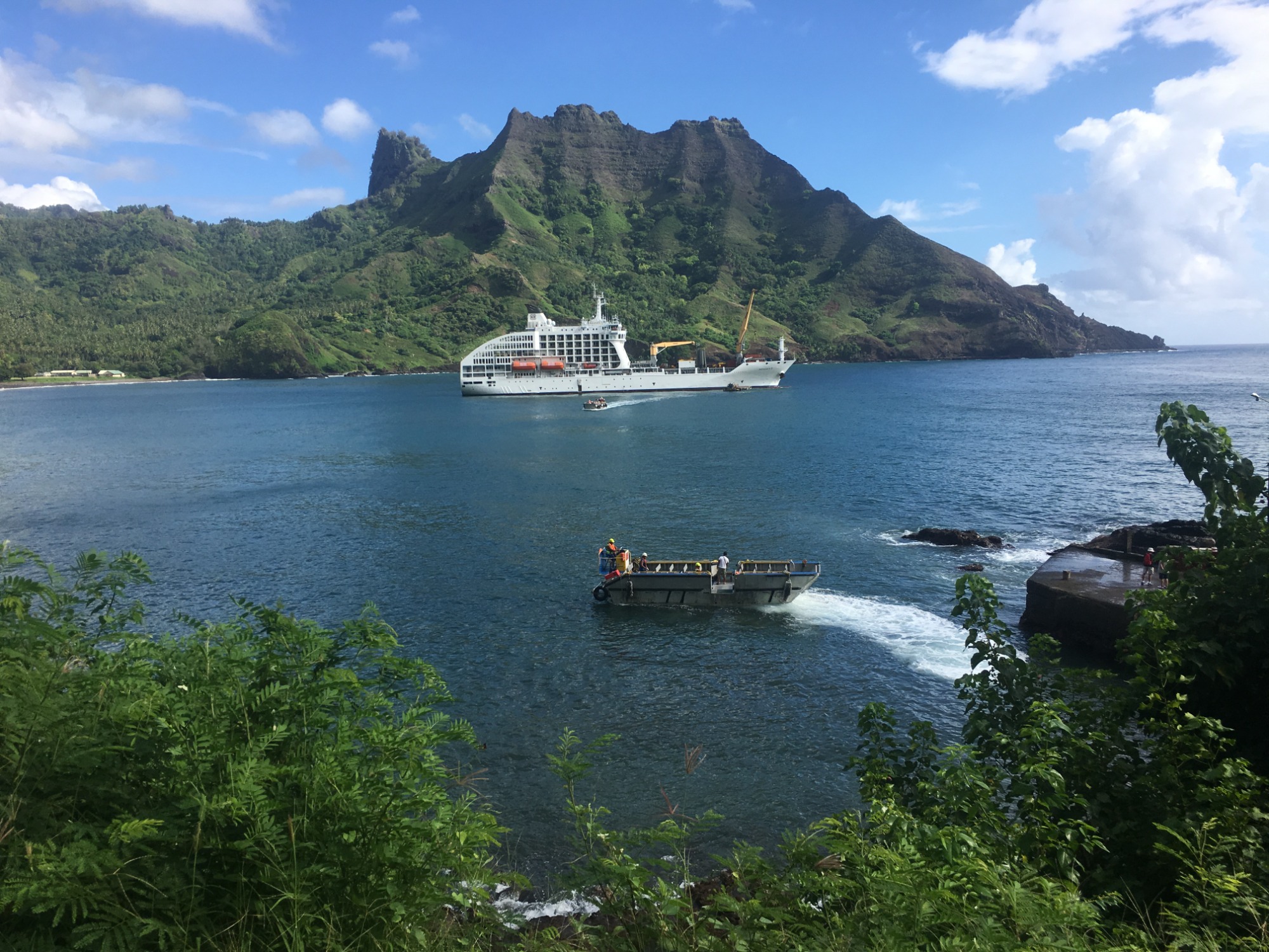 Am Morgen vollführt die Aranui ein spektakuläres Manöver in der „Unsichtbaren Bucht“ – eine 180-Grad-Wendung, die das Herz höherschlagen lässt.
